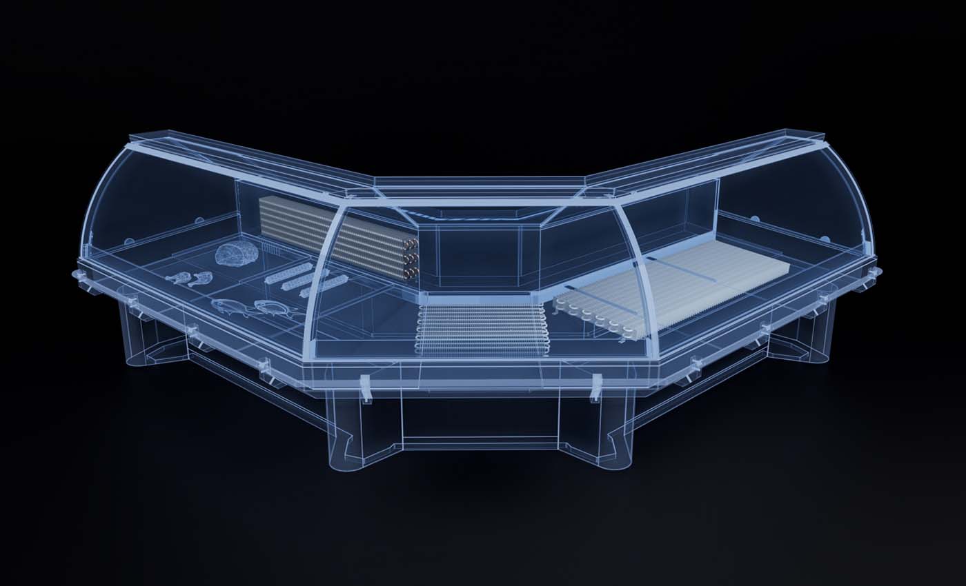 Die Walter Roller GmbH stellt u.a. Verdampfer zum Einbau in gewerbliche Kühlmöbel (Gastronomie-Kühlschränke, Fleischtheken, Kühlregale im Supermarkt, ...) her. Da die Roller-Geräte von außen nicht sichtbar im Gerät verbaut sind, habe ich eine Darstellung im Röntgeneffekt erstellt. So werden auch sonst unsichtbare Geräte zum echten Hingucker.